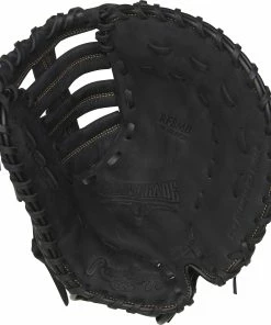 In addition to a quicker break-in, this Heart of the Hide first base mitt offers supreme comfort thanks to its leather palm lining, thermoformed wrist strap and padded thumb sleeve. We’ve redesigned the heel pad on all our R2G gloves to promote an easier close too. This first base mitt is constructed in a 12.5-inch FM18-pattern with a classic black/camel design, and eye-catching silver accents. You’ll be able to scoop more balls and will look great doing it!